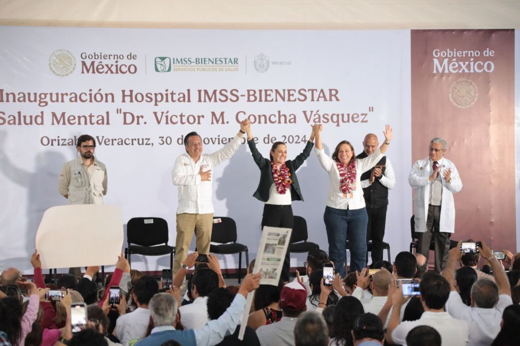 Orizaba, Ver., 30 de noviembre 2024.- La Presidenta de México, Claudia Sheinbaum Pardo, inauguró en Orizaba, Veracruz el nuevo hospital del IMSS-Bienestar de salud mental «Dr. Víctor M. Concha Vásquez», el cual destacó será ejemplo en la atención y prevención de enfermedades mentales.