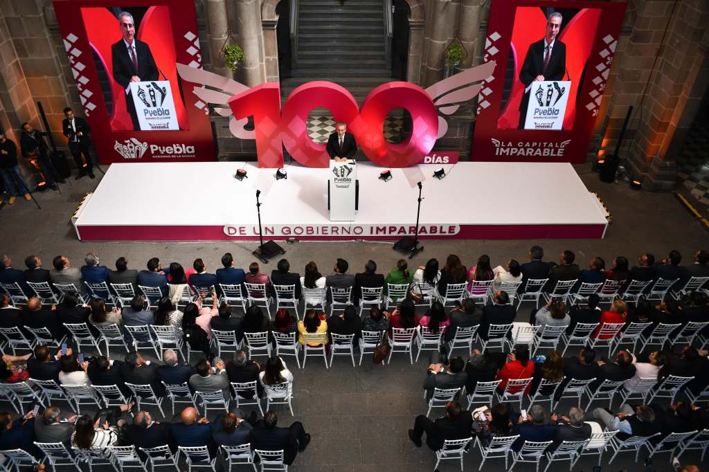 Puebla, Pue., 29 de enero 2025.- Con la premisa de que las cosas se hacen bien y a la primera, el presidente municipal, Pepe Chedraui Budib, realizó la presentación de sus primeros 100 días desde que asumió el Gobierno de la Ciudad, donde resaltó que este periodo sirvió para tomar el control de la administración ante la situación en la que recibió la ciudad, por lo que el trabajo se centra en fortalecer la seguridad, obra pública, iluminación, así como la economía y el turismo.