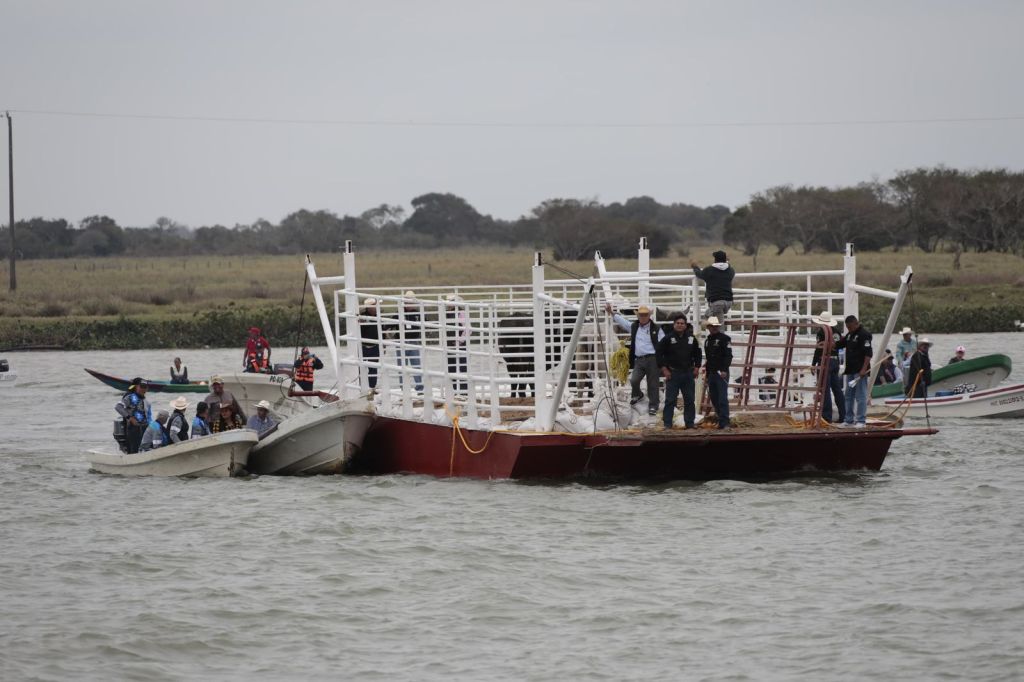 Como parte del espectáculo, los bovinos cruzaron el río Papaloapan a bordo de una panga, un acto que se ha convertido en símbolo de la festividad, para luego ser liberados en el muelle de la ciudad, en medio de una escena cargada de colorido que atrajo a una multitud.