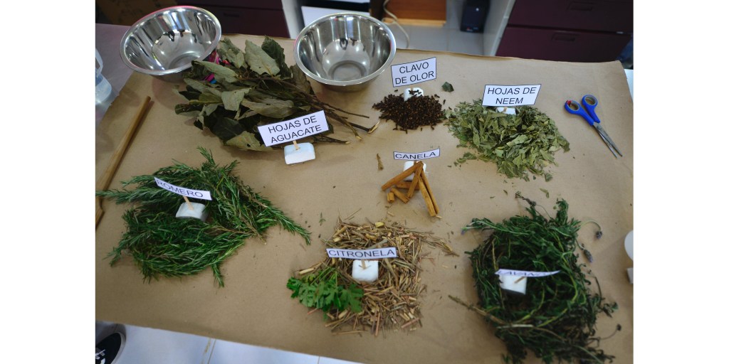 Para ello se debe considerar los siguientes ingredientes: cuatro litros de agua, 500 mililitros de alcohol al 96%; 50 mililitros de esencia pura de citronela; 200 gramos de clavo de olor; tres rollos de hojas de aguacate, de citronela, de neem, de lavanda y romero así como varias rajas de canela.