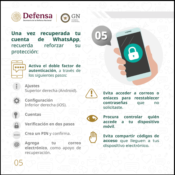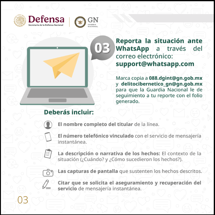 La Guardia Nacional pone a tu consideración estos pasos, a fin de prevenir afectaciones al patrimonio y reputación de los usuarios ante un uso indebido.