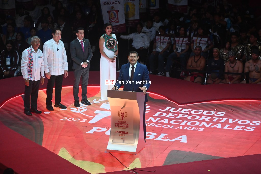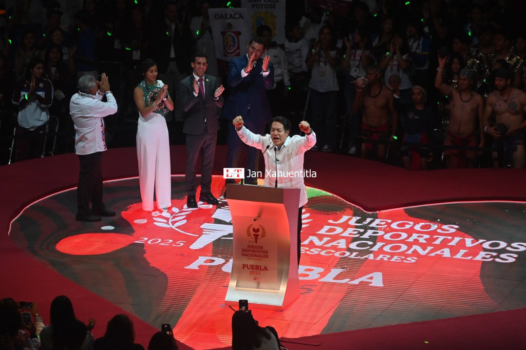 En su oportunidad, el director general de la CONADE, Rommel Pacheco, puntualizó que nunca en la historia un solo estado había albergado a los tres niveles escolares, como ahora lo hace Puebla. Destacó que el deporte no es un gasto, es una inversión, por ello reconoció al gobernador Alejandro Armenta y al secretario de Educación Pública, Mario Delegado, el esfuerzo por llevar a cabo dichos juegos. «Estos juegos deportivos son para que ustedes hagan amistades, entrenen y el próximo año lleguen con gran espíritu», expresó.