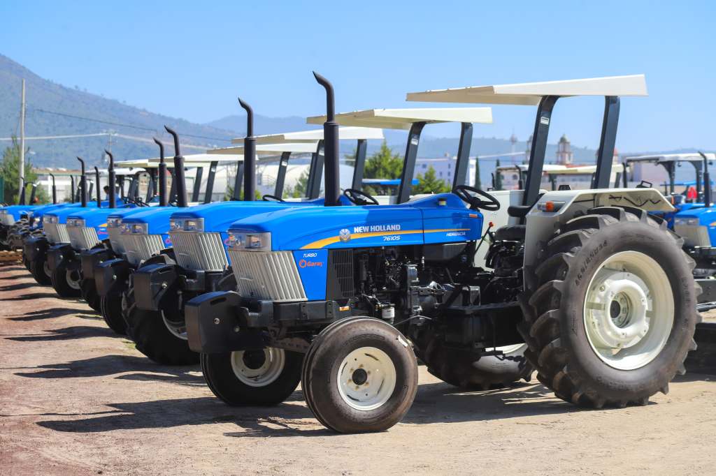 El programa contempla maquinaria como tractores, sembradoras, aspersores, drones fumigadores y niveladoras, distribuidas por 27 microrregiones en el estado, lo que permite atender este año 134 mil hectáreas, como parte de una meta final de 600 mil hectáreas actualmente improductivas.