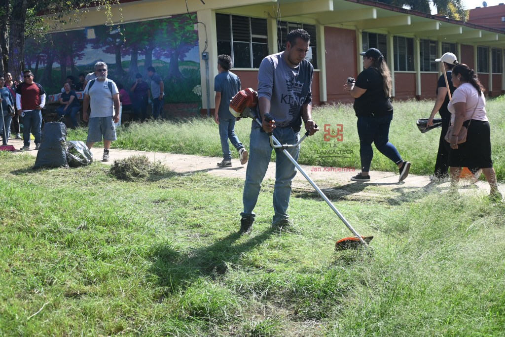 Xalapa, Ver., 23 de agosto 2025.- Funcionarios y empleados de la Subsecretaría de Educación Media Superior y Superior, junto con maestros y padres de familia de la escuela Experimental de Xalapa realizaron un tequio, para dejar en óptimas condiciones a días de iniciar el ciclo escolar.