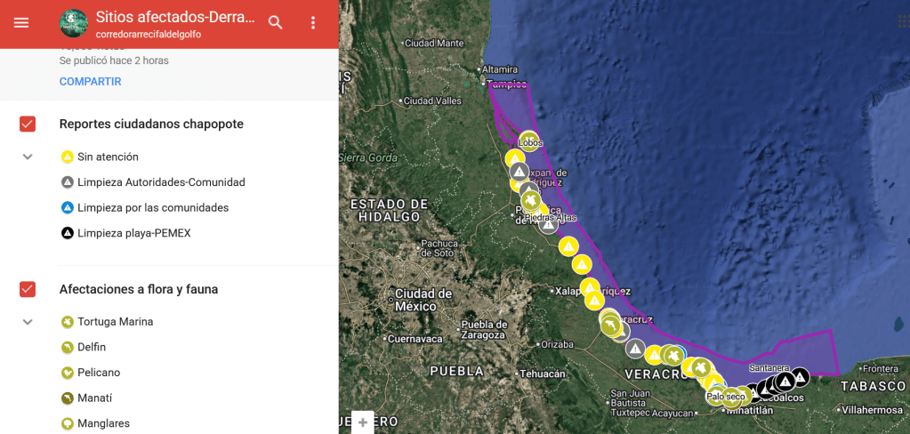 La organización señaló que, pese a que autoridades han asegurado que las playas están limpias y Petróleos Mexicanos reporta un avance del 85 por ciento en las labores de limpieza, información de la Red Corredor Arrecifal del Golfo de México y comunidades locales muestra un panorama distinto.