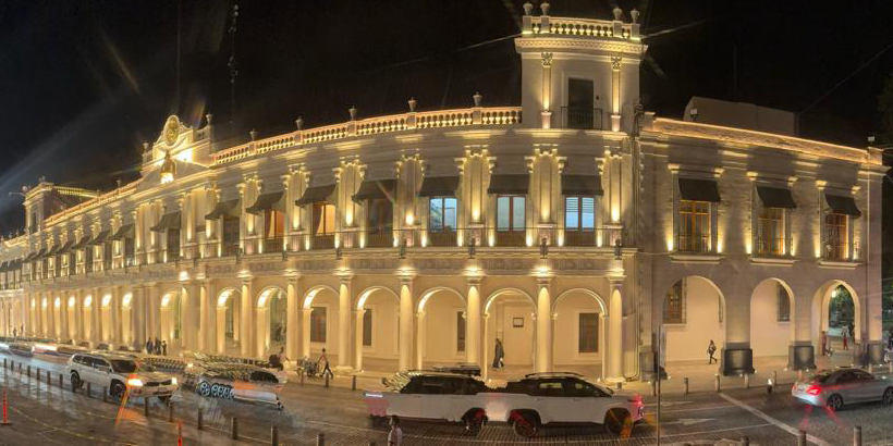 En el video que subió la gobernadora a sus redes sociales, se puede observar el Palacio de Gobierno, como nunca antes se había visto, al lucir limpio, ordenado, con pisos relucientes y la piedra de cantera con la cual fue construido recién pulida.
